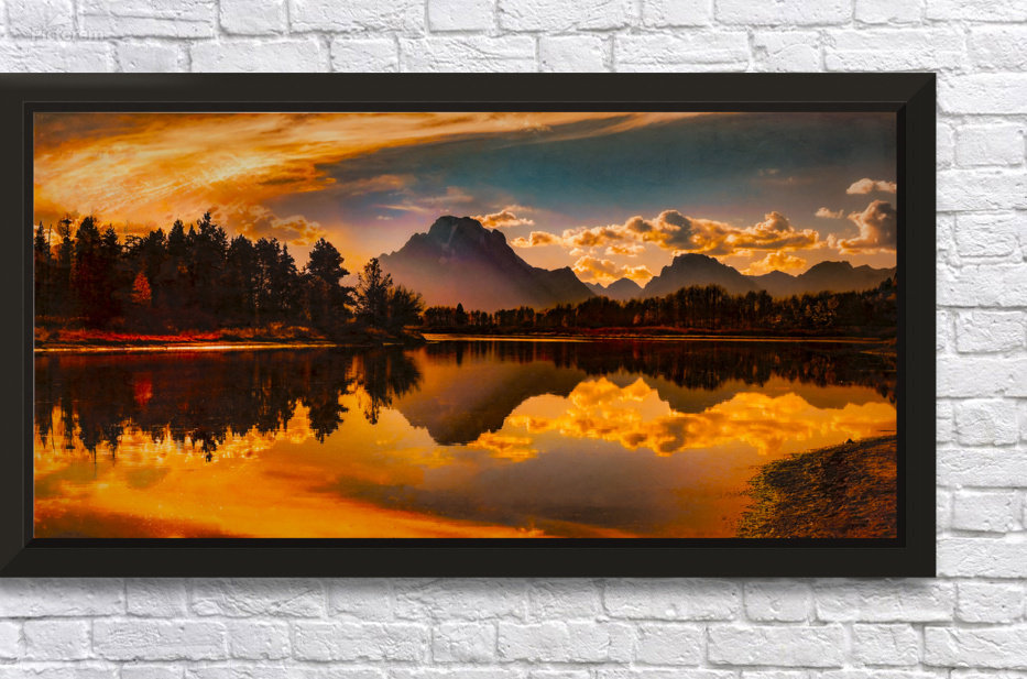 Ox Bow Bend and Mt Moran at Sunset Wall Decor Frame