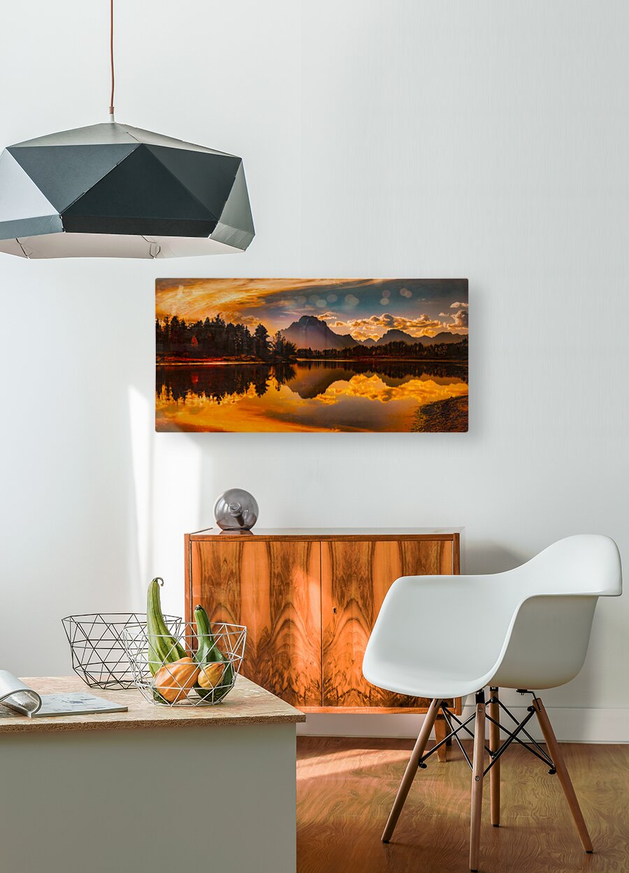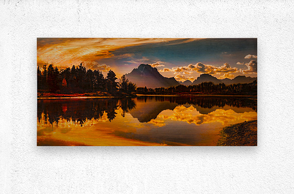 Ox Bow Bend and Mt Moran at Sunset  Wood print