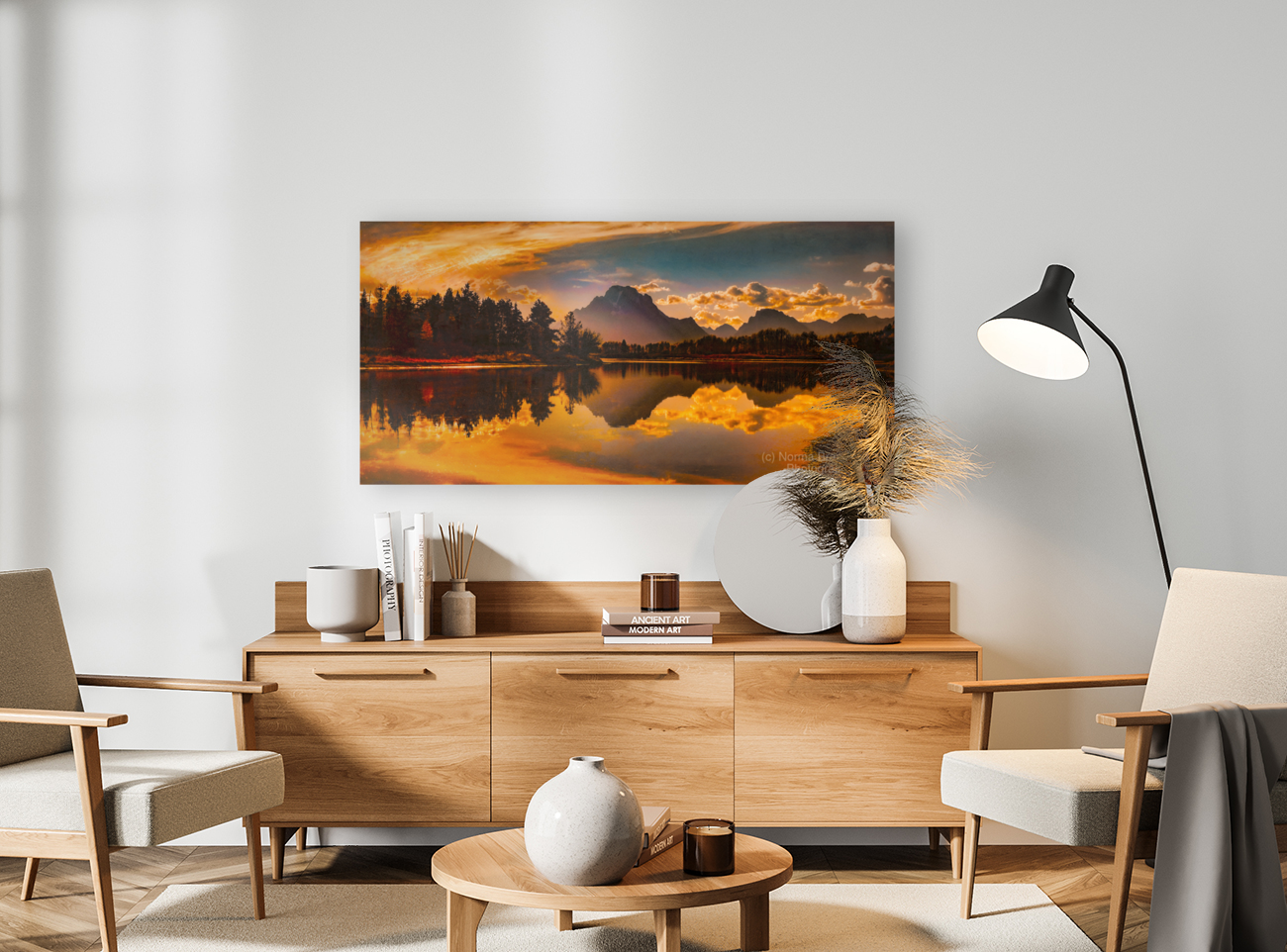 OX BOW BEND AND MT MORAN AT SUNSET NORMA BRANDSBERG PHOTOGRAPHY  Canvas Print