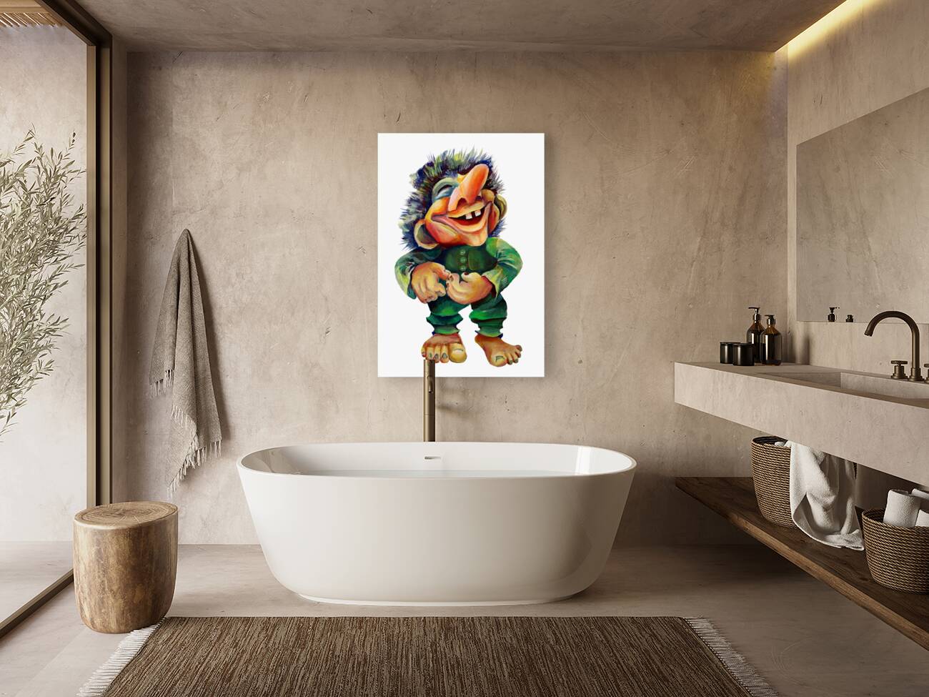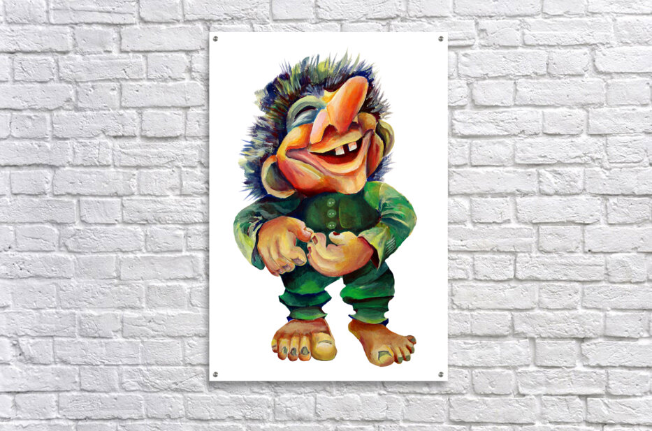 Say hello to this cheerful troll — a joyful woodland creature with big feet, wild hair, and an even bigger smile! This whimsical painting bursts with personality, showcasing a playful fantasy character in vibrant greens, earthy oranges, and a touch of mischief. Perfect for fantasy lovers, Nordic folklore fans, or anyone who enjoys joyful, humorous art with character and charm. A magical friend to brighten any room and make you smile daily!