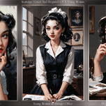 The Nostalgic Grace And Elegance Of A Young Woman AI Concept Art by Xzendor7; featuring the portraits An Elegant Young Woman In A Vintage Office Setti...[+]