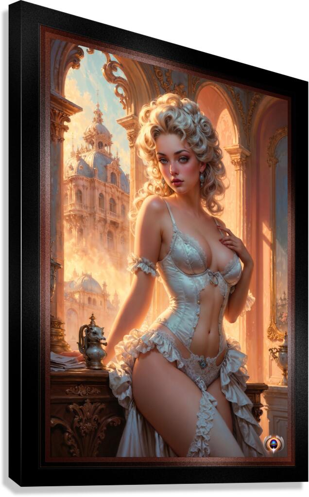 A SENSUAL EXQUISITE BAROQUE PORTRAIT OF A REGAL BEAUTY IN LINGERIE MESMERIZING AI CONCEPT ART BY XZENDOR7 XZENDOR7  Canvas Print