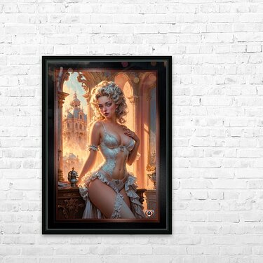A Sensual Exquisite Baroque Portrait Of A Regal Beauty In Lingerie Mesmerizing AI Concept Art by Xzendor7 Wall Decor Frame
