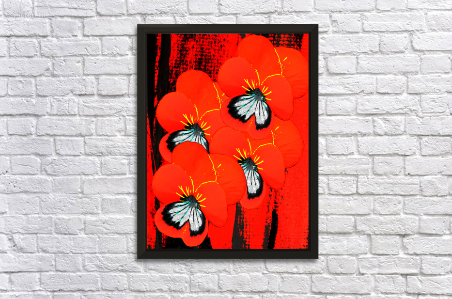Abstract Red Pansy Bouquet  Picture Frame Printing