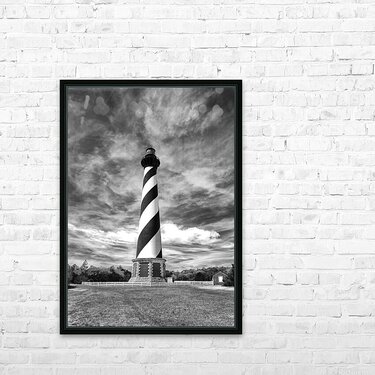 Cape Hatteras Lighthouse in Black and White Vertical Wall Decor Frame