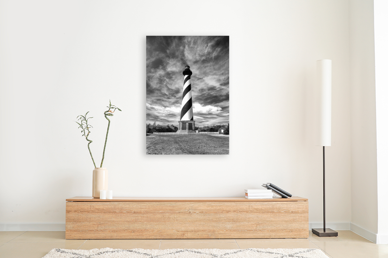 Cape Hatteras Lighthouse in Black and White Vertical Canvas print
