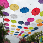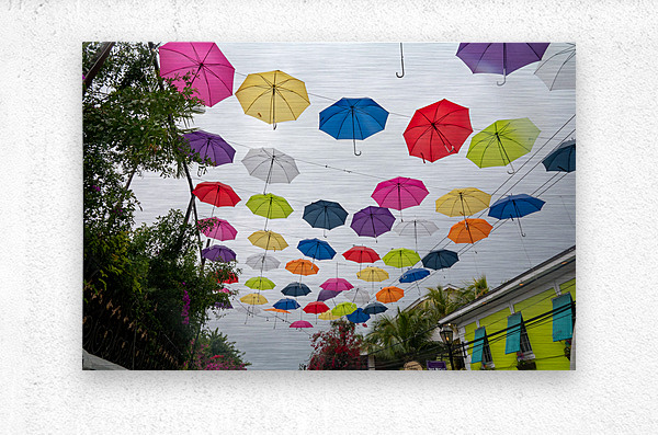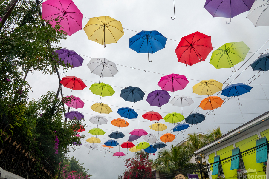 Umbrellas on West Street or Umbrella Lane in Nassau, Bahamas.