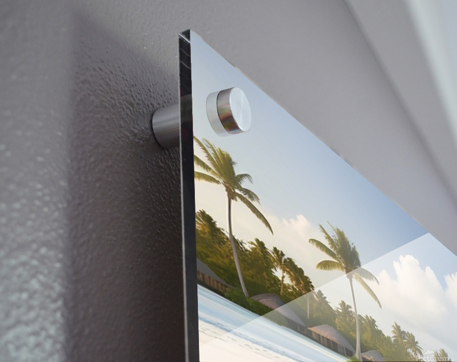 Printed to the edge - Ready to hang - provided with 4 premium polished aluminum stand off ( wall screws and mounting hardware provided )