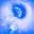 A crescent moon is visible against a deep blue sky, surrounded by a cluster of bright, white speckles that mimic stars or snow. It evokes a dreamy, ce...[+]