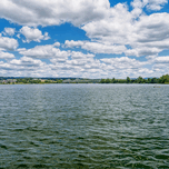 A wide view of the Kimberling City Bridge and Table Rock Lake on a beautiful cloudy afternoon in Kimberling City, Missouri, United States. This is the...[+]