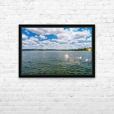 A wide view of the Kimberling City Bridge and Table Rock Lake on a beautiful cloudy afternoon in Kimberling City, Missouri, United States. This is the newer truss bridge built in 1957. In 1927 there was another bridge built that set below this one. It's still there today, however it sets about 100 feet below the water. Table Rock Lake is an artificial lake or reservoir in the Ozarks of southwestern Missouri and northwestern Arkansas. It's just over 67 square miles. This photo was taken by Jennifer White with Timeless Moments Photography. All images are copyrighted © Timeless Moments Photography/Jennifer White. All rights reserved. Please note the watermark does not print on ordered products.