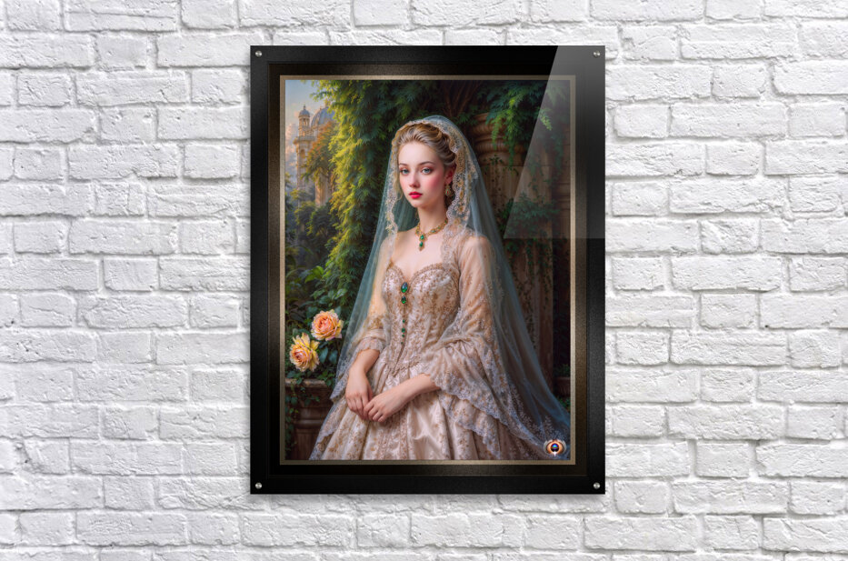 Elegant 18th Century Lady With A Veil Baroness Sophie-Marie Allemand Captivating AI Concept Art by Xzendor7 Wall Decor Frame