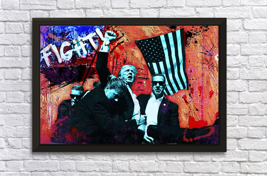000 painting recreation High-stakes moment in American history Trump assassination attempt art Fine art reproduction for collectors Limited edition historical artwork Thought-provoking art piece Donald Trump