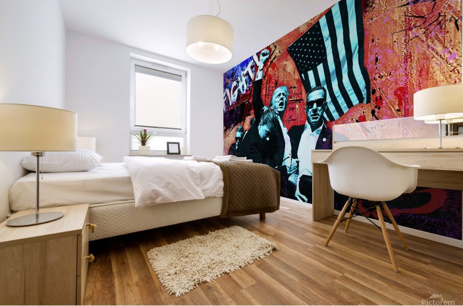 This captivating artwork is a meticulously created masterpiece inspired by the $100000 painting immortalizing a high-stakes moment in American history. Witness the raw intensity as former President Trump finds himself in the crosshairs of an attempted assassination surrounded by unwavering security and the powerful symbol of American freedom the Stars and Stripes. A powerful and thought-provoking piece this recreation offers a unique opportunity to own a piece of history. Ideal for collectors seeking art that commands attention and sparks conversation..