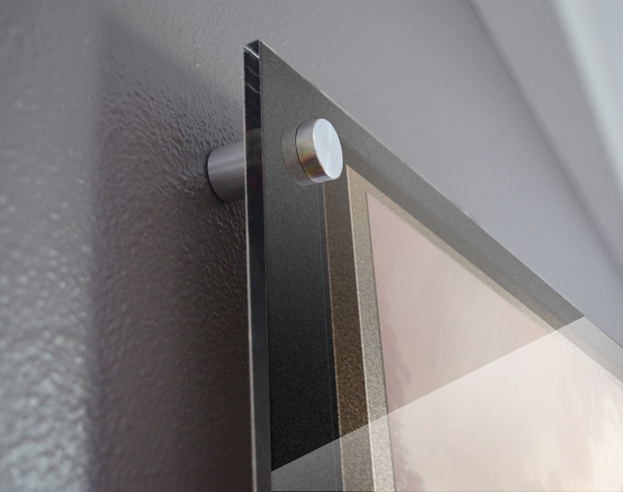 Printed to the edge - Ready to hang - provided with 4 premium polished aluminum stand off ( wall screws and mounting hardware provided )