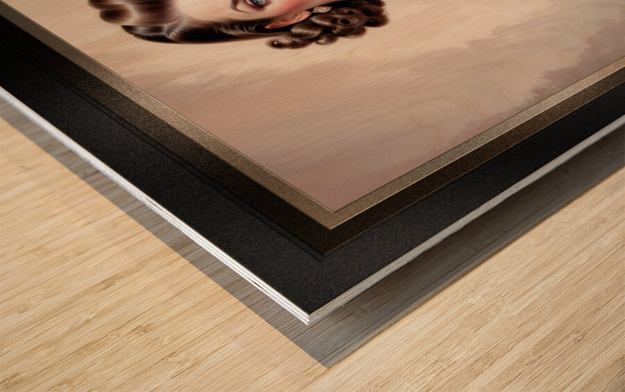 Elegant Pin-Up Girl Beauty In Satin Blue Attire Reading At Her Vanity Mesmerizing AI Concept Art by Xzendor7  Wood print