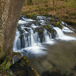 Flat Creek tumbles over a rocky waterfall in the foothils of the Smoky Mountains near the little town of Chestnut Hill Tennessee. This beautiful water...[+]