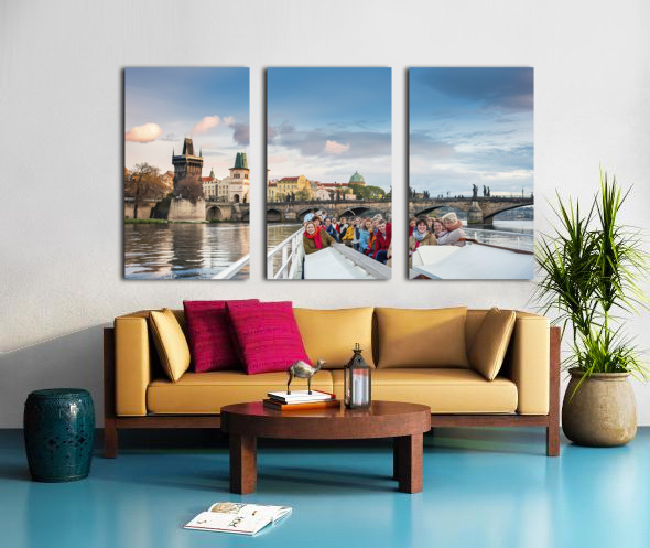 TOURISTIC BOAT NEAR THE CHARLES BRIDGE IN PRAGUE  1722607523.4841 LUCIAN DRAGAN  Canvas Print