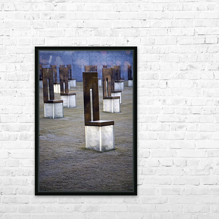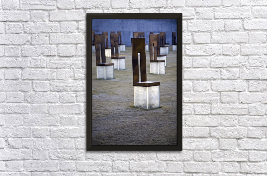 Memorial chairs on translucent bases mark the site of a massive terror attack in Oklahoma City. Original photographic artwork. Credit: DeepEarth Photography (original image)