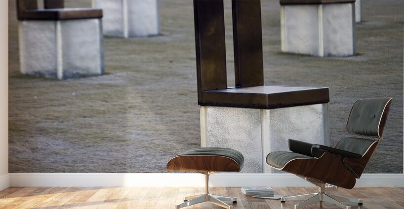 Memorial chairs on translucent bases mark the site of a massive terror attack in Oklahoma City. Original photographic artwork. Credit: DeepEarth Pho...[+]