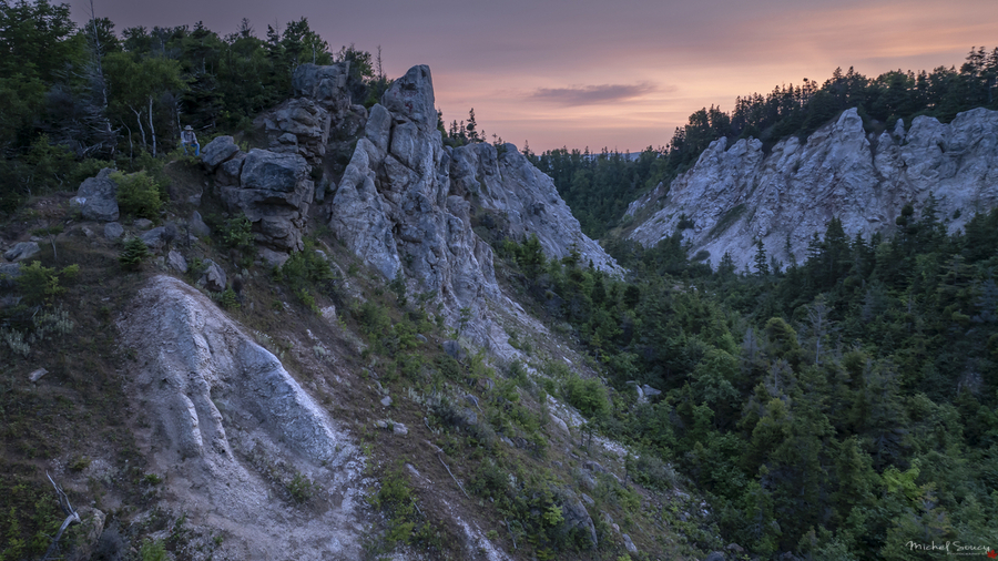 Dawn is an ideal time for some reflection time at one's "Happy Place". Gypsum Mines, Cheticamp, Cape Breton Island, Nova Scotia, Canada © Michel JS Soucy