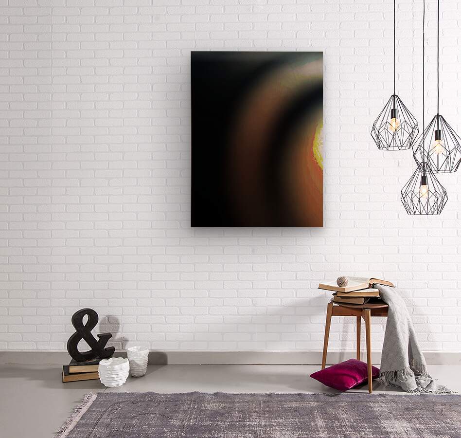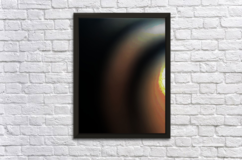 Originally an abstract photo laterally digitally manipulated. Features soft, gradient-like bands of colon ranging from dark black to bright yellow create a smooth transition. The arrangement gives a sense of depth and abstract forms, with the brightest area drawing most attention.