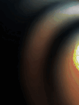 Originally an abstract photo laterally digitally manipulated. Features soft, gradient-like bands of colon ranging from dark black to bright yellow cre...[+]