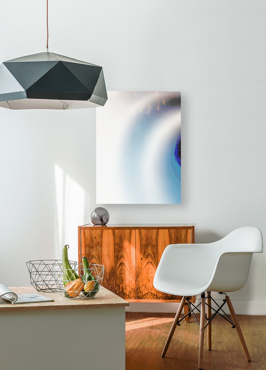 Once an abstract photo laterally digitally manipulated into a stunning piece of contemporary art. Features soft gradients of blue and white which blen...[+]