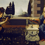 The Annunciation is a painting by the Italian Renaissance artist Leonardo da Vinci, dated to c.?1472–1476. Digitally restored.