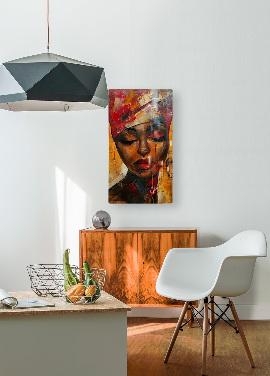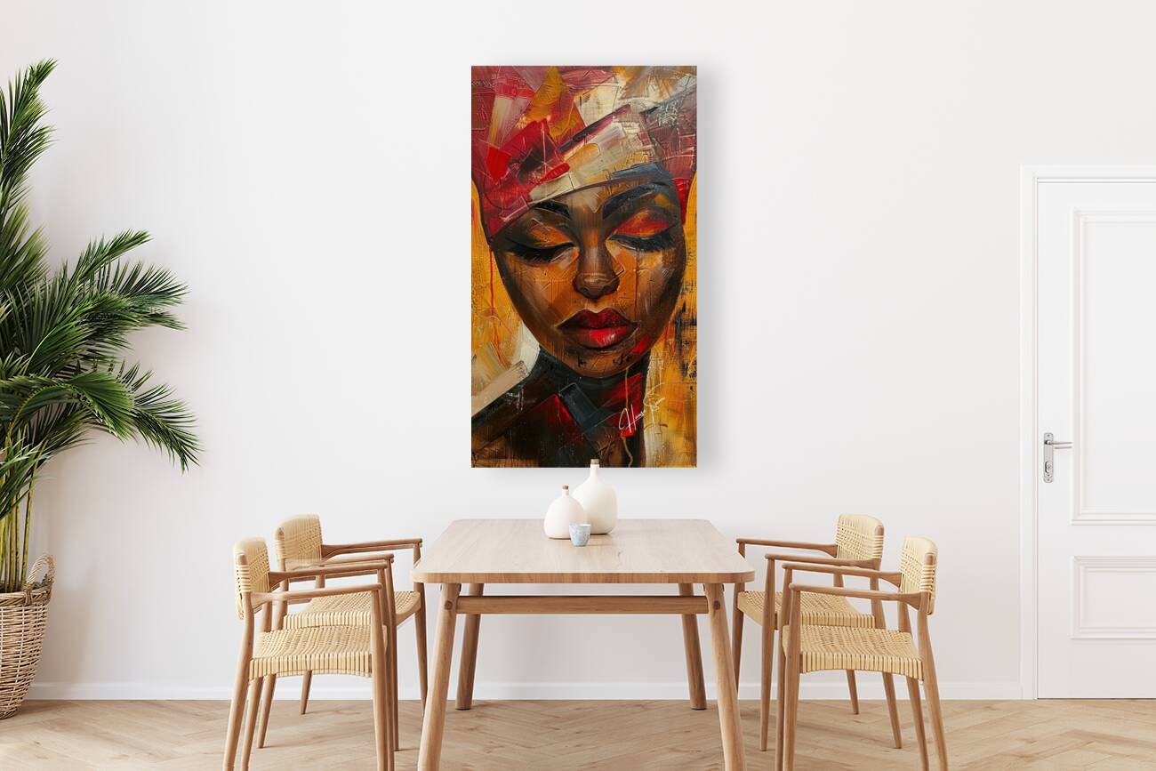 An evocative artwork portraying radiant resilience and inner strength through bold colors and abstract forms, Zuri is a tribute to the enduring spirit of African women.