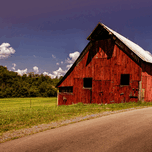Down this scenic mountain West Virginia byway, in the New River Gorge area, stands this bright red old barn, which has seen better days...but is still...[+]