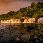 We camped here in the in the New River National Park and Gorge mountains of West Virginia in our tiny trailer for two nights in July, so got an opportunity to take photos both at sunset and sunrise in great weather and rain. The largest waterfall on the New River, Sandstone Falls spans the river where it is 1500 feet wide. Divided by a series of islands, the river drops 10 to 25 feet.
