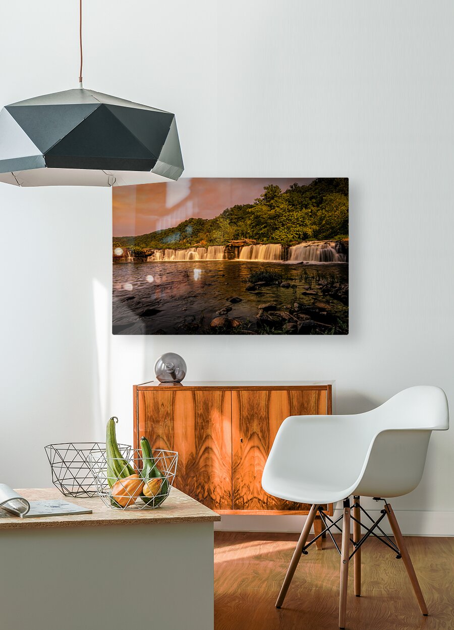 ABOUT THIS ARTWORK: WEST VIRGINIA NEW RIVER SANDSTONE WATERFALL SUNSET