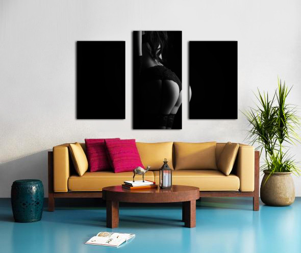Silhouette of erotic woman posing in black lingerie Canvas print