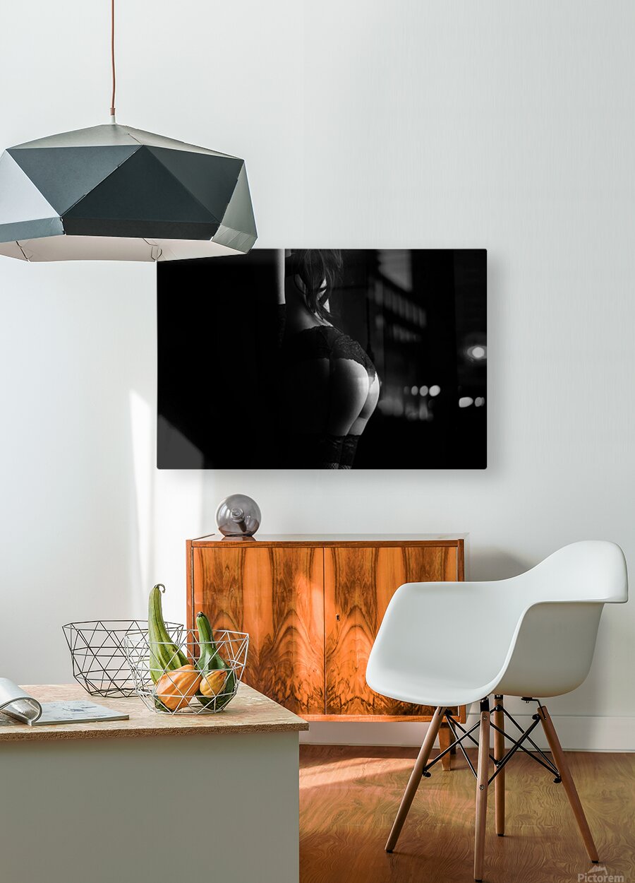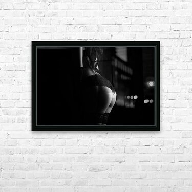 Get this artwork "Silhouette of erotic woman posing in black lingerie" in a framed print.
