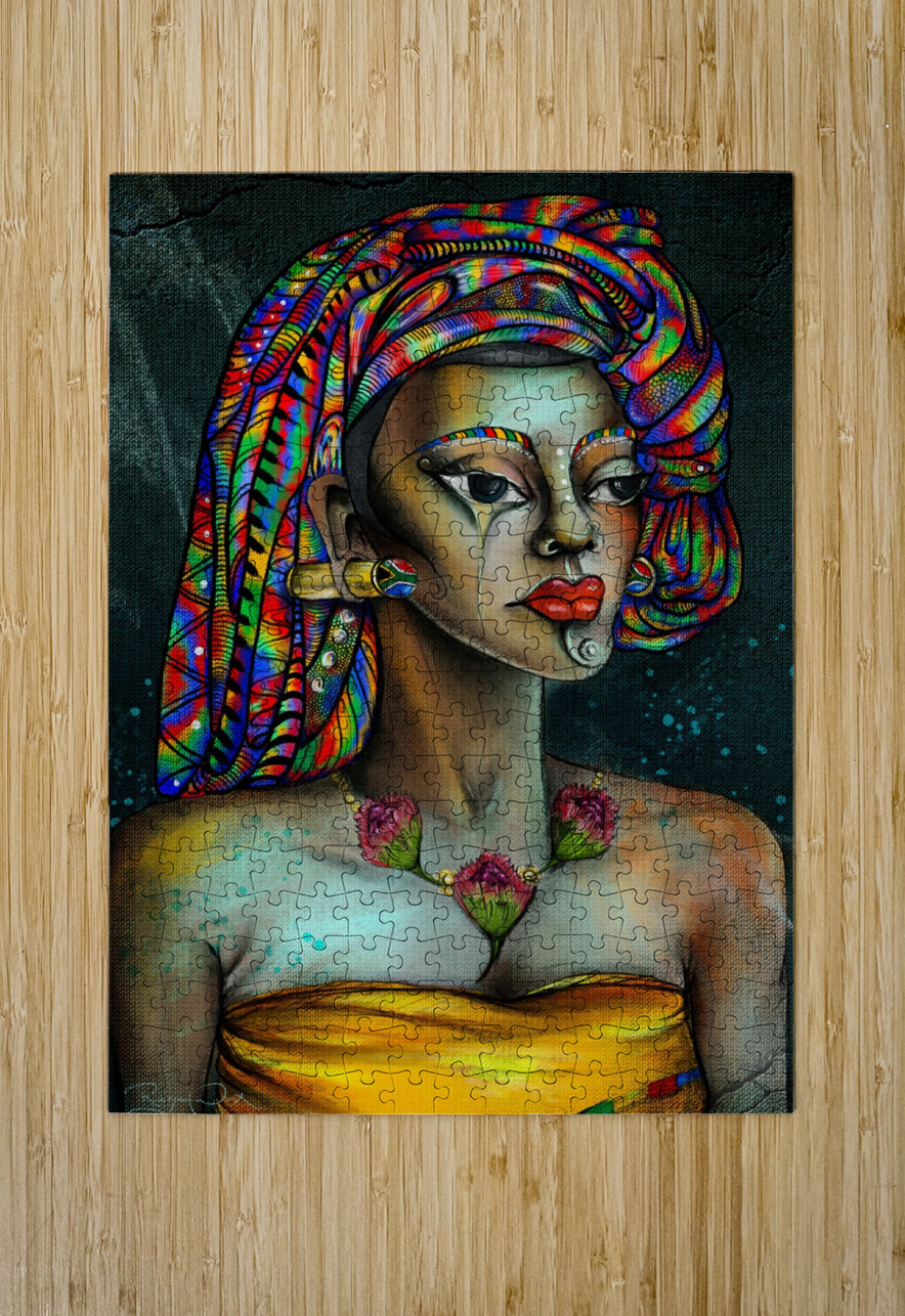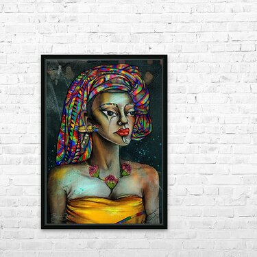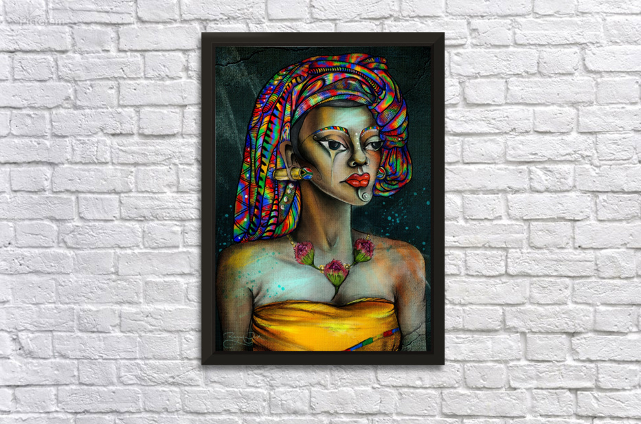 This painting has so much meaning; each element has a purpose. To start, it’s a celebration of Women’s Day here in South Africa on 9th August • It represents all the strength a woman possesses. • The proteas, our national flowers, symbolize femininity. • The tear represents abuse against women in the world. • The earrings represent being proudly South African. • The headdress represents our rainbow nation. All in all, it’s a celebration. Inspired by the incredible painting Balinese Lady by Tretchikoff, this has been my most meaningful painting to date. I hope you enjoy it!