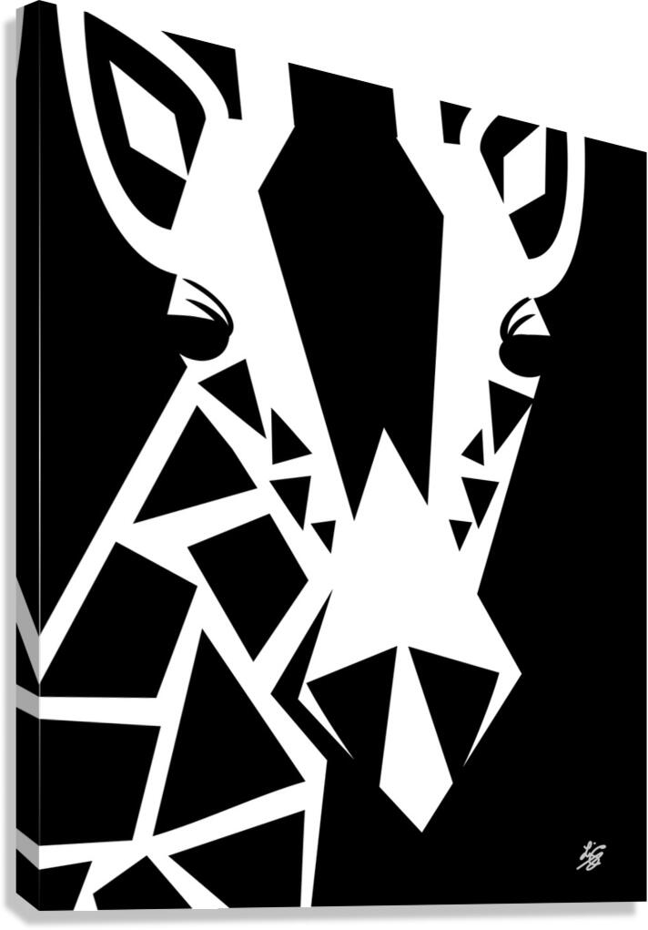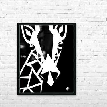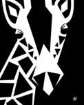 Stylized geometric wildlife portrait of a giraffe in black and white