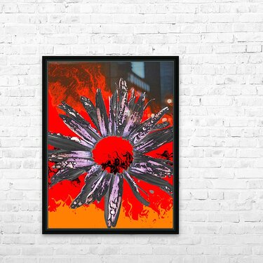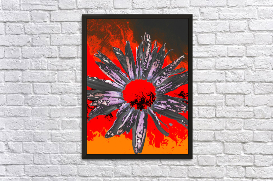 Abstract Fiery Daisy Flower Picture Frame Printing