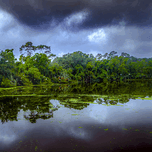 I was at the beach to catch a sunset on Hilton Head Island, but it didn't look like the sunset was going to materialize. There were just too many clouds and the horizon was being blocked by the clouds. So after spending about an hour waiting, I decided to pack it up and move to another location where there was a breeding colony, a rookery of a number of kinds of birds, mostly herons and ebis of different species. As I was coming around the corner hundreds of birds were flying to their nesting area for the night. I would have loved to been able to catch them, but was more than a little pleased when I saw the sunset views over the trees.
