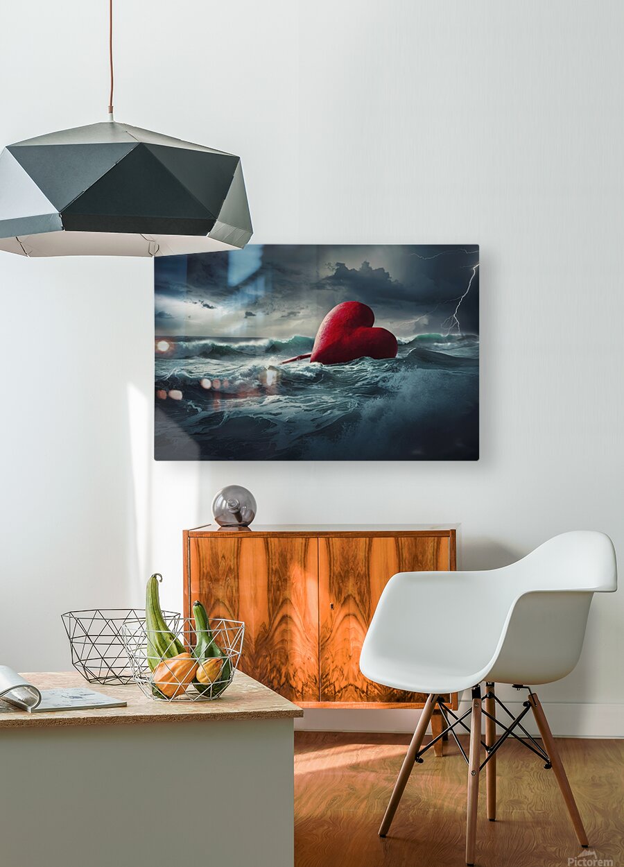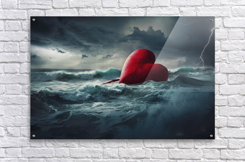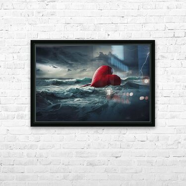 Get this artwork "Large Red Heart Precariously Drifting In Tumultuo" in a framed print.