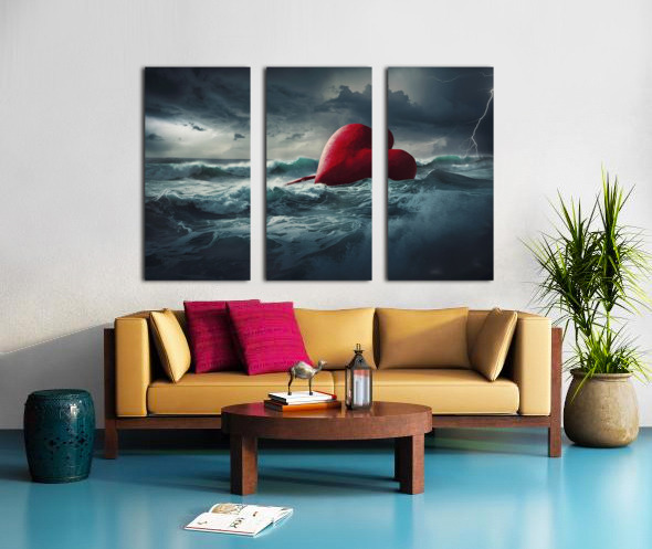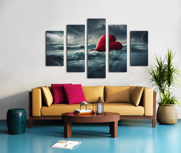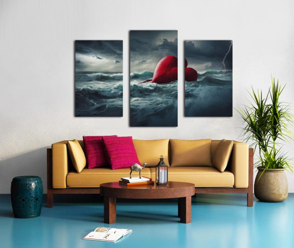 Large Red Heart Precariously Drifting In Tumultuo Canvas print