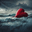 Large Red Heart Precariously Drifting In Tumultuous Ocean on Stormy Day
