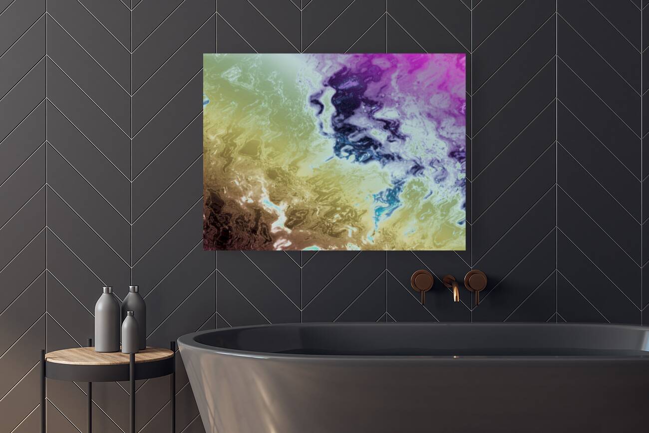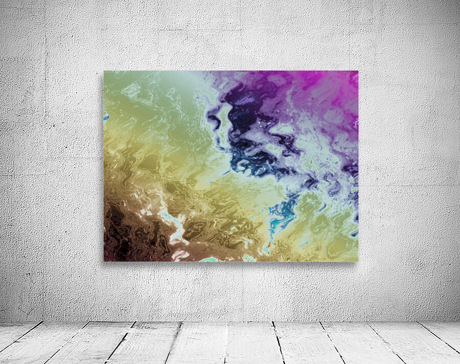 Originally a photo of a tree through a rain soaked window, laterally digitally manipulated in canva.com using various artistic filters created this stunning abstract design. Features a vibrant mix of purples, blues, greens, and browns swirling together in a fluid, abstract pattern. The colors blend and transition seamlessly, creating a sense of movement and depth.