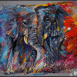 “Loving Ellies” I’m absolutely captivated by these majestic creatures! Their strength and love are truly inspiring. Had to bring these magnificent beasts into my collection. Hope you adore the vibrant colours and rich textures in this piece as much as I do!