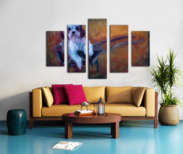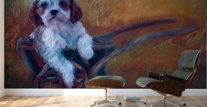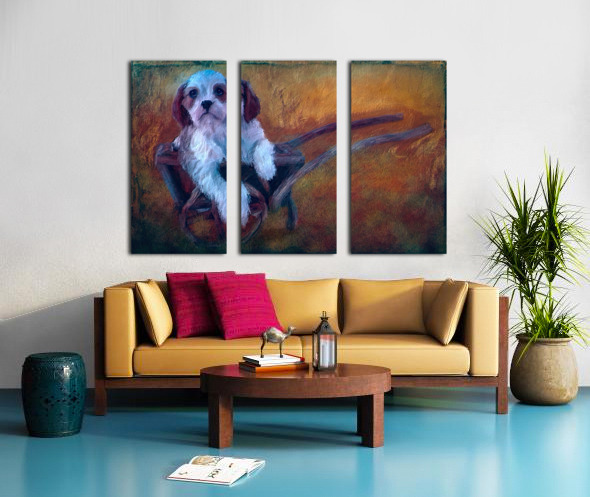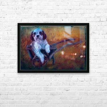 This painting captures a touching moment of waiting and hope. The little puppy, comfortably nestled in a wooden cart, gazes out at the world with an innocent yet slightly sad expression. The background, rendered in warm tones, creates a cozy and inviting atmosphere that envelops the scene. This artwork is perfect for those who appreciate sincerity and simplicity, adding a touch of kindness and gentleness to any home.
