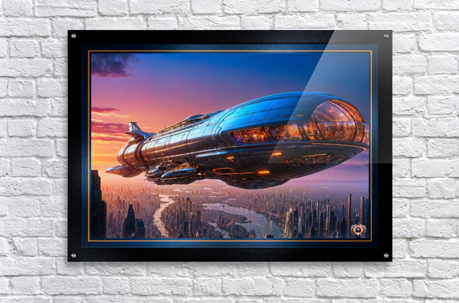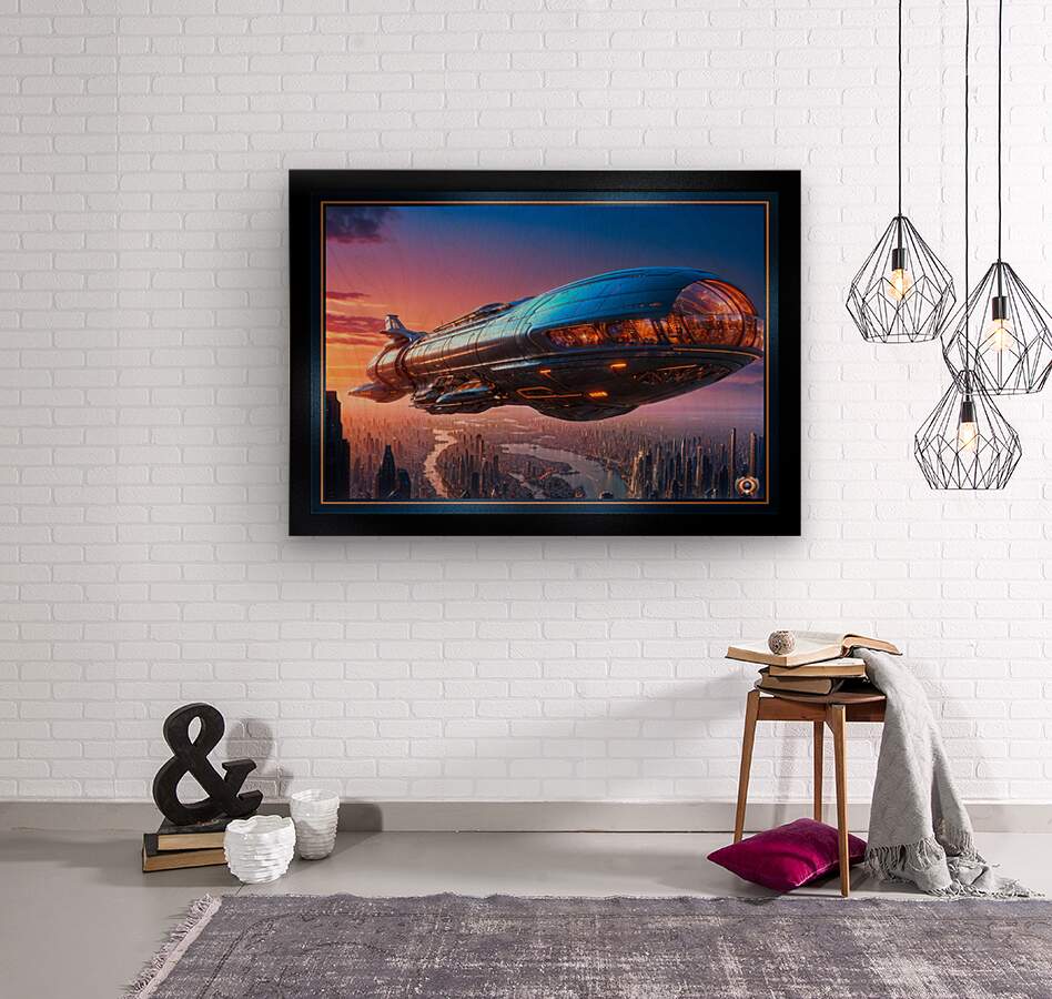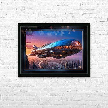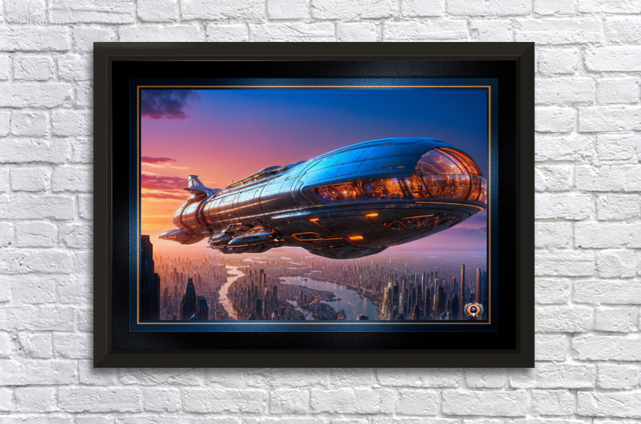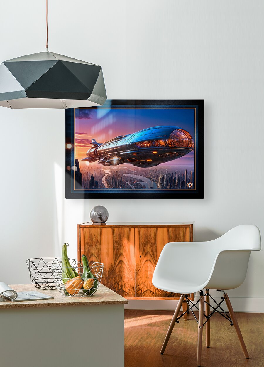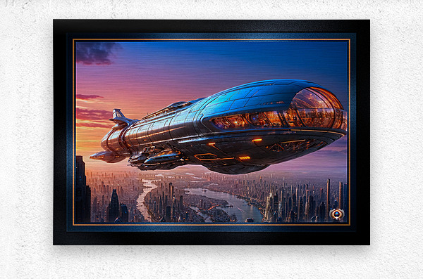 Tourlan Shuttle Futuristic Airship Over Modern Metropolis At Sunset Captivating AI Concept Art by Xzendor7 Wall Decor Frame