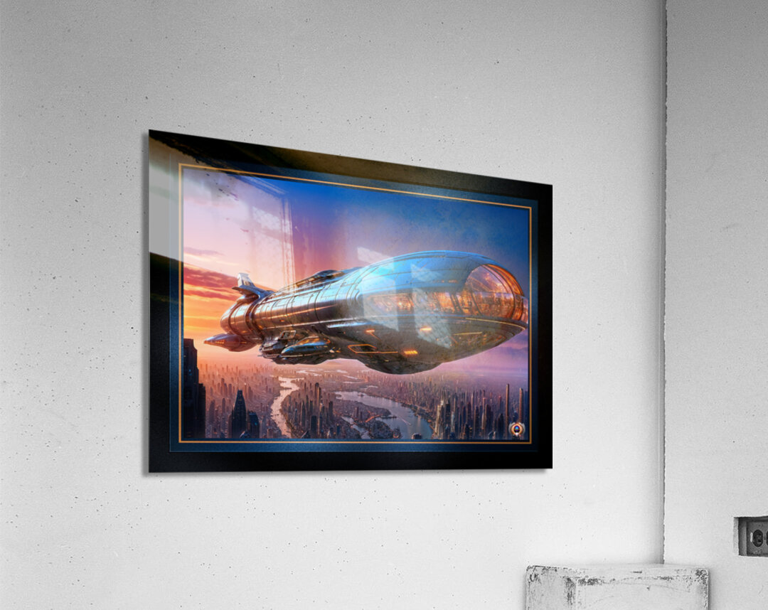 Tourlan Shuttle Futuristic Airship Over Modern Metropolis At Sunset Captivating AI Concept Art by Xzendor7 Frame print