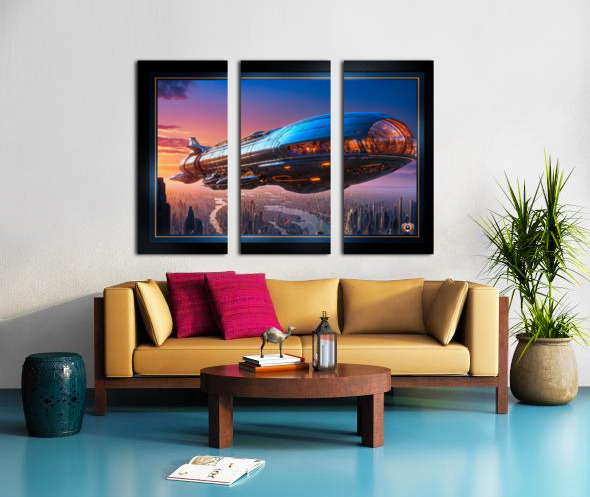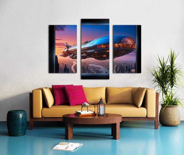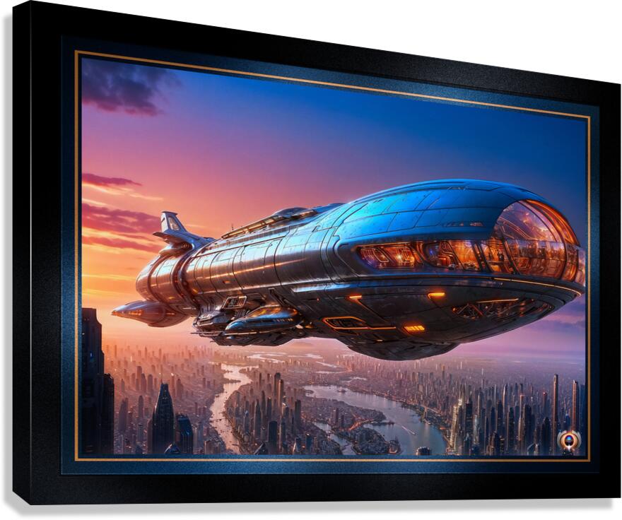 TOURLAN SHUTTLE FUTURISTIC AIRSHIP OVER MODERN METROPOLIS AT SUNSET CAPTIVATING AI CONCEPT ART BY XZENDOR7 XZENDOR7  Canvas Print