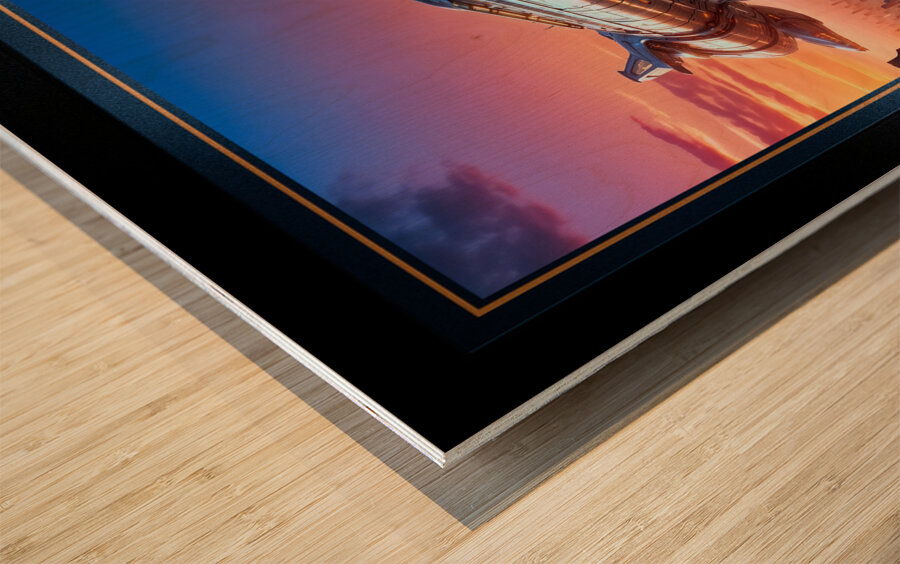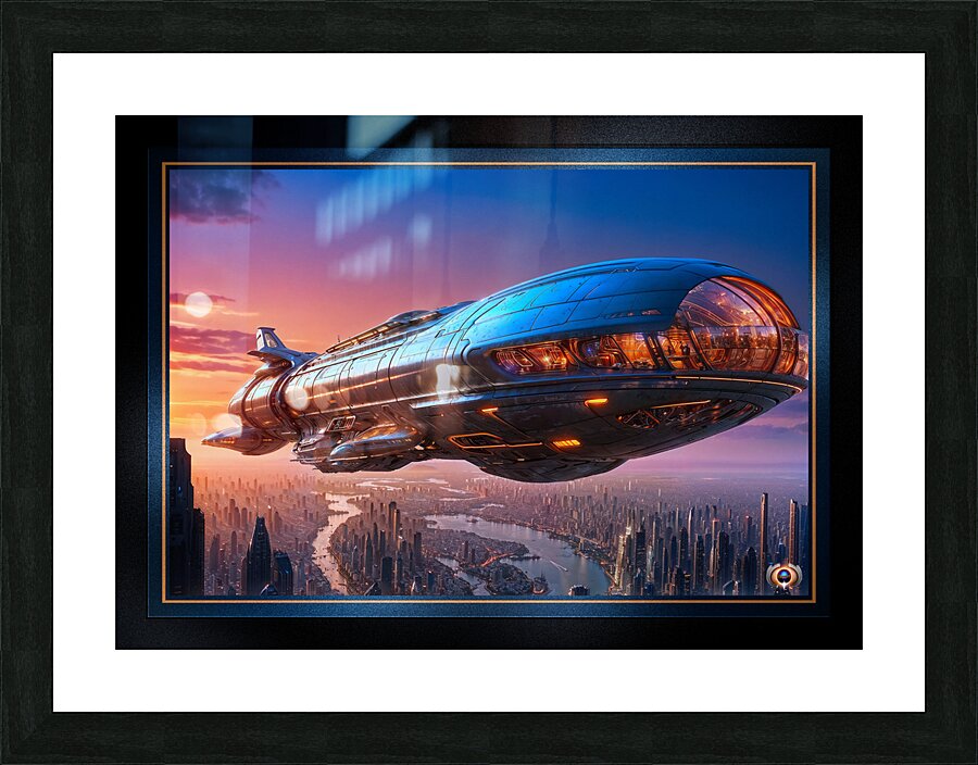Tourlan Shuttle Futuristic Airship Over Modern Metropolis At Sunset Captivating AI Concept Art by Xzendor7 Picture Frame Printing