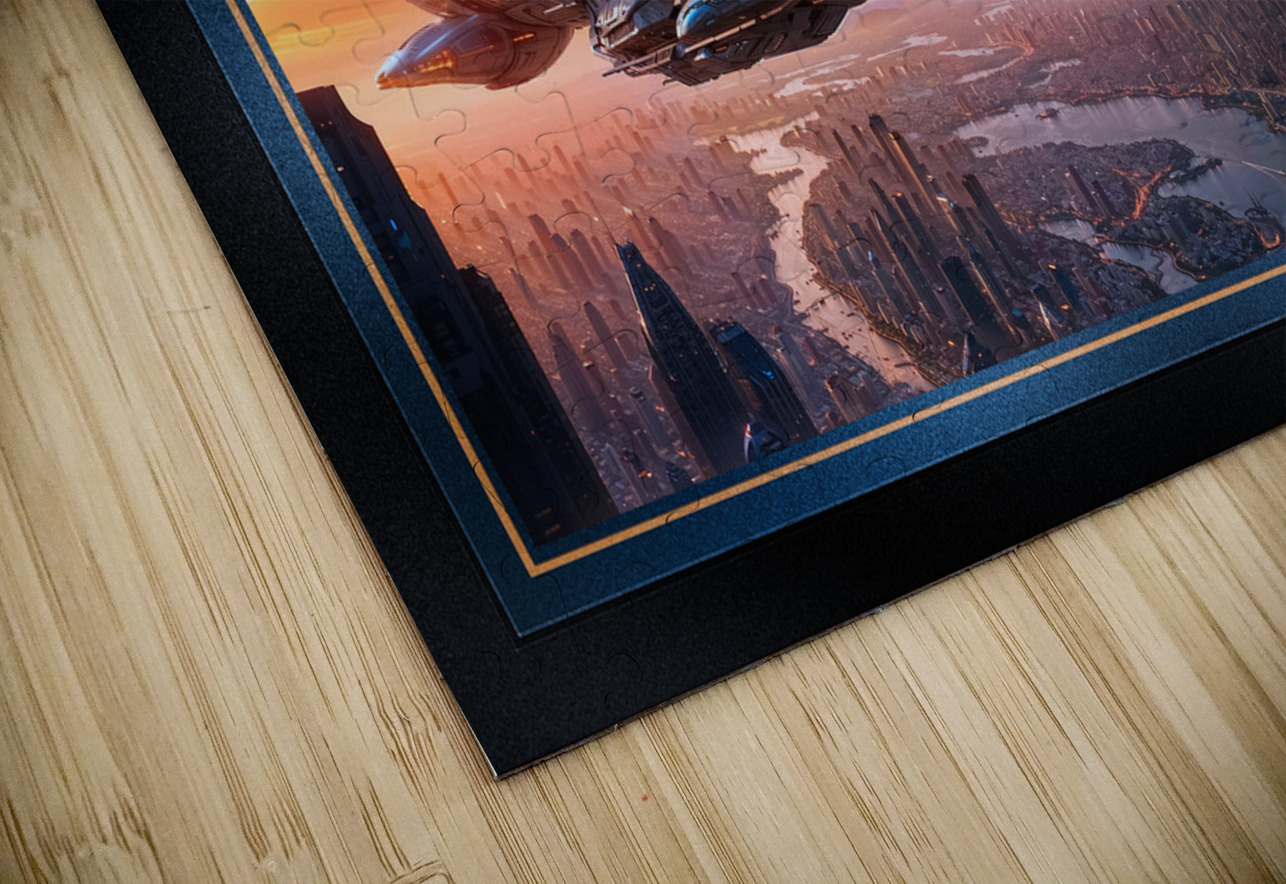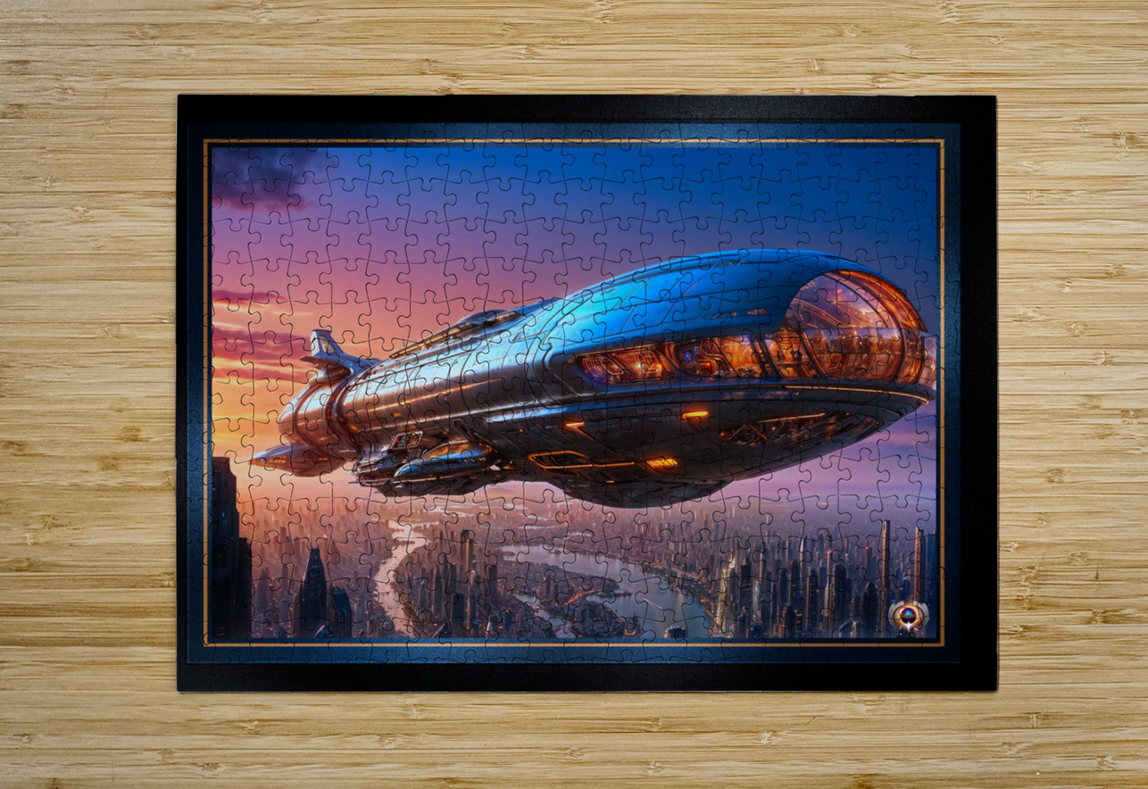 Tourlan Shuttle Futuristic Airship Over Modern Metropolis At Sunset Captivating AI Concept Art by Xzendor7 xzendor7 Puzzle printing